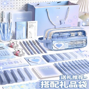 【学习套装】海盐蓝+60张小狗贴纸+冰透夹5+小狗挂件+小狗pp夹+刷题笔5+30张便签本+荧光笔