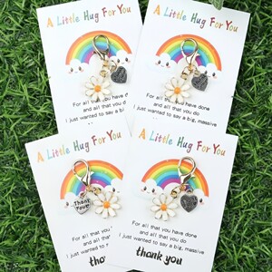 跨境新款A Little Hug For You英文感恩祝福卡创意卡通花朵钥匙扣