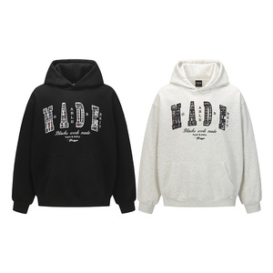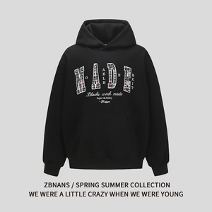 美式复古设计感贴布绣连帽卫衣男女秋冬新款宽松休闲百搭情侣上衣