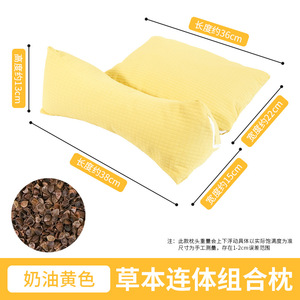 荞麦壳连体枕家用颈椎三角枕棉布艾草组合枕头多功能护颈枕荞麦枕