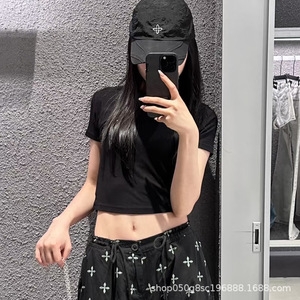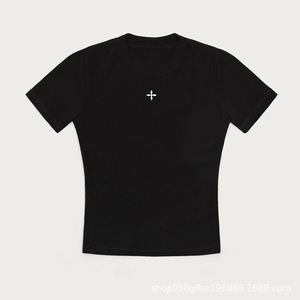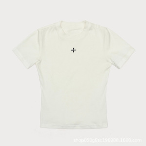 SK十字徽章收腰Tee 1刺绣运动圆领短袖T恤上衣