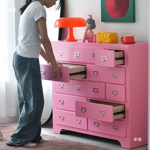 多巴胺彩色斗柜边几多层床头柜安妮世家客厅糖果色柜实木玄关粉色