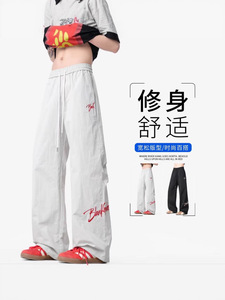 秋季新款刺绣男女高街宽松伞兵裤休闲直筒中腰潮牌工装裤裤子男