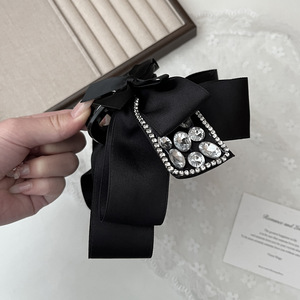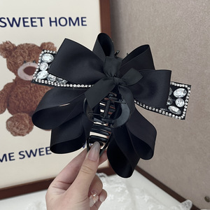 高级感黑色 闪钻多层蝴蝶结抓夹女时尚轻奢后脑袋盘发鲨鱼夹发卡
