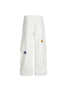 2025年男女刺绣趣味星星复古新款百搭情侣宽松直筒拖地白色长裤