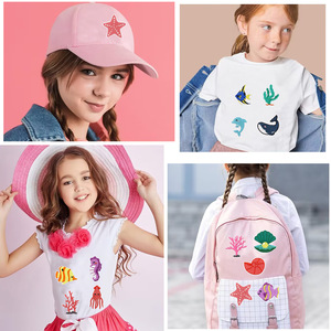 刺绣布贴海洋生物补丁贴海豚海草贝壳绣花章Patch服装帽子包装饰