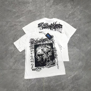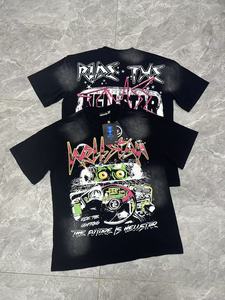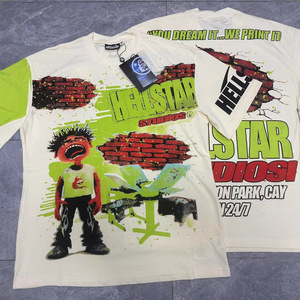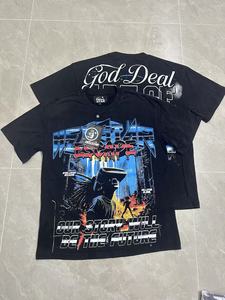 美式超火小众潮牌夏季地狱之星满印涂鸦印花短袖男女宽松半袖T恤