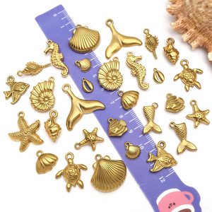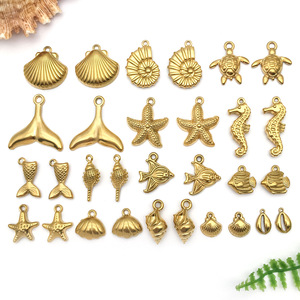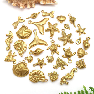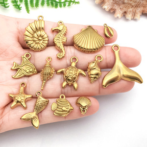 不锈钢金色个性挂件海洋贝壳海螺海鱼diy手链项链吊坠饰品配件