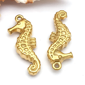 1个12x26x4.5mm孔径1.3mm真空电镀金色不锈钢中号海马-3.1g-T2289