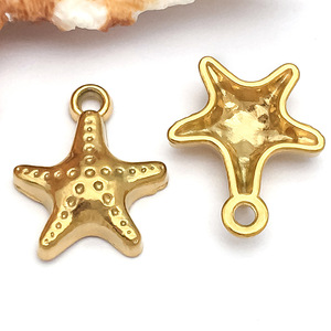 1个14x16x4mm孔径1.7mm真空电镀金色不锈钢海星-1.16g-T2298