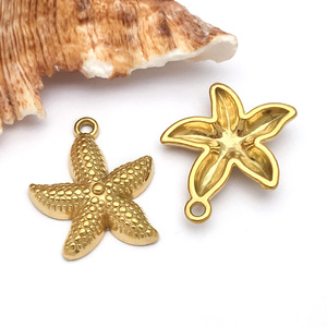 1个19X23x4mm孔径2mm真空电镀金色不锈钢海星-2.72g-T2293