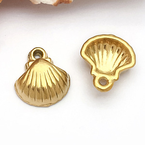 1个9x10x3mm孔径1.3mm真空电镀金色不锈钢小号贝壳-0.6g-T2287