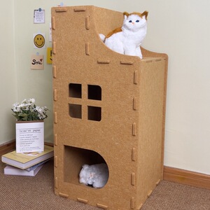 跨境毛毡猫窝猫盒子超大号猫隧道四季通用猫抓板纸箱房子一体