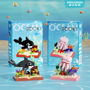 兼容乐高海洋书笺动物鲨鱼卡通公仔拼装积木儿童益智玩具批发代发