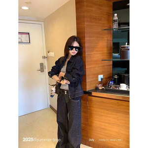 SUN11 原牛色短款铆钉牛仔外套女早秋美式复古小个子宽松上衣