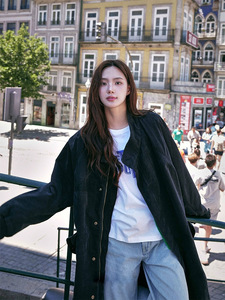 现货S*P2025秋新品复古鱼尾工装外套中长款简约休闲时尚上衣女