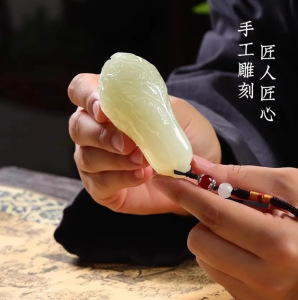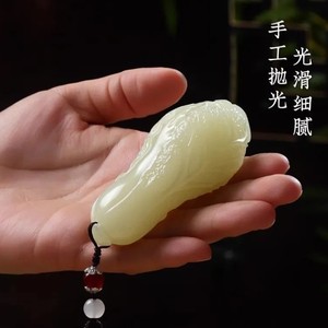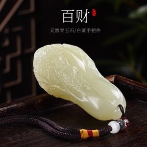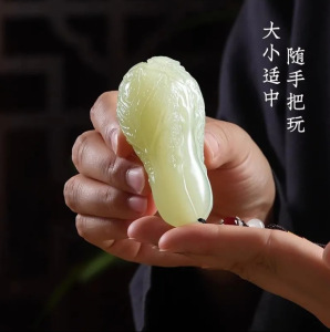 天然玉石《百财》白菜手把件家居桌面装饰品送男女友解压把玩礼物