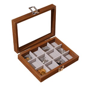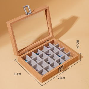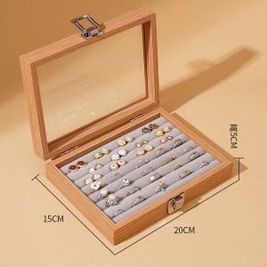 黑胡桃木纹防尘带盖珠宝箱耳环手链戒指耳钉项链盒首饰收纳盒