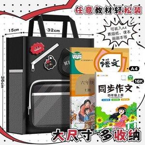咔巴熊大容量补习袋魔术贴补习手提袋书袋撞色补课包学习用品批发