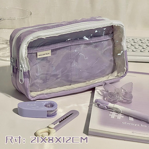 简约糖果色系透明笔袋多巴胺大容量文具盒小众高颜值小学生铅笔盒