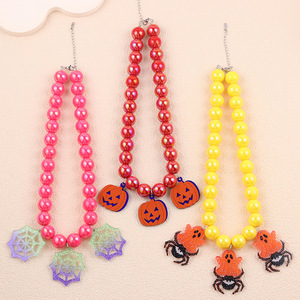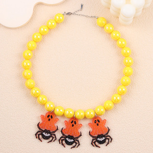 欧美跨境时尚万圣节串珠项链荧光色圆珠亚克力个性风潮项链饰品女