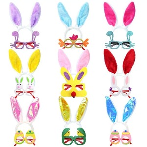 跨境毛绒兔耳朵发箍眼镜儿童节表演装饰道具复活节兔子眼镜套装