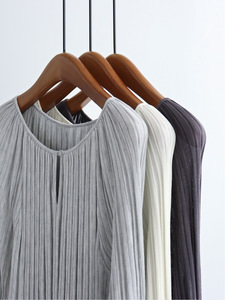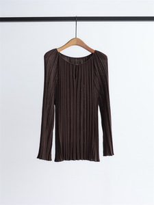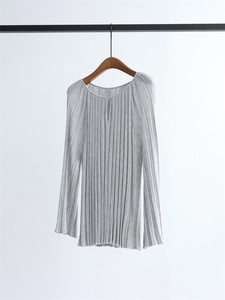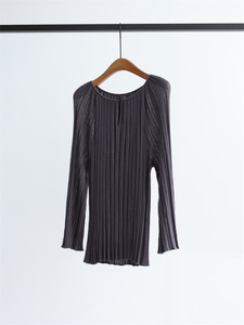 慵懒镂空秋季新品天丝莱赛尔褶皱针织衫喇叭袖气质慵懒上衣套头女