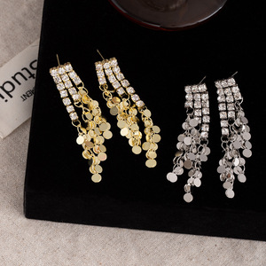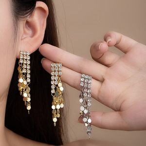 纸醉金迷超仙长款复古镶钻金属亮片流苏耳环女轻奢高级感夸张耳饰