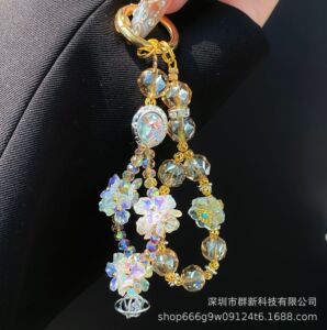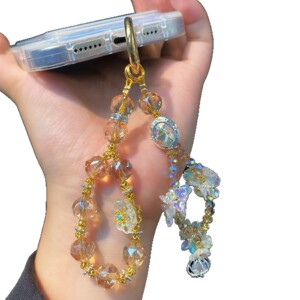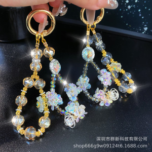 重工nv琉璃花水晶串珠diy挂件 爆闪宝石双链可拆挂饰手机包包挂链
