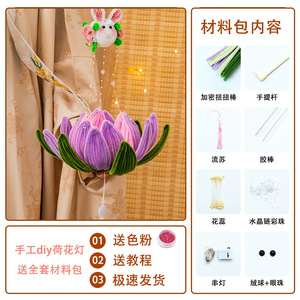 中秋节灯笼扭扭棒手工diy材料包手提发光荷花灯莲花灯小兔子灯笼