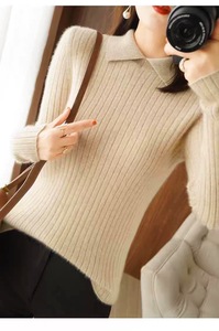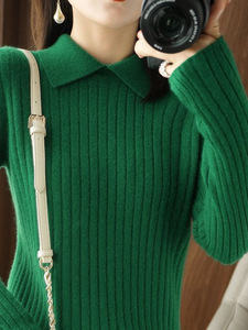春秋冬季长袖针织衫POLO衫娃娃领毛衣百搭修身显瘦洋气上衣打底衫