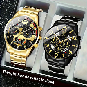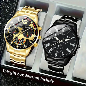 2件套,男士商务休闲圆形石英腕表