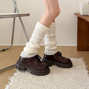靴尚棉菱形袜套女韩系复古麻花翻边针织腿套秋冬加厚少女堆堆小腿