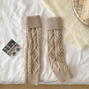 24176翻边菱形麻花袜套