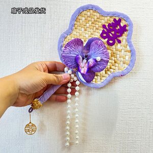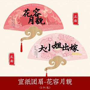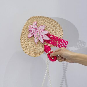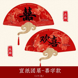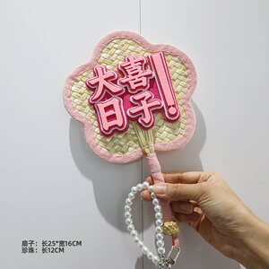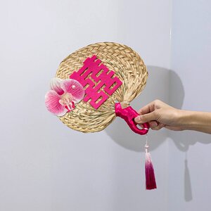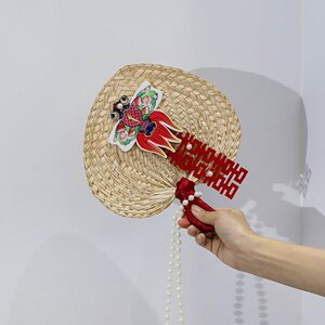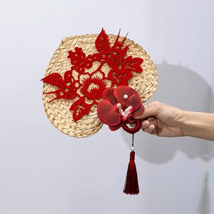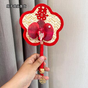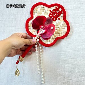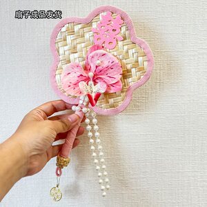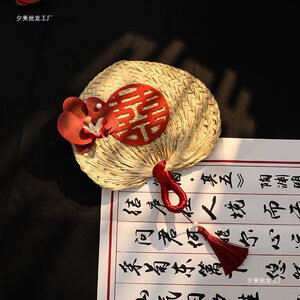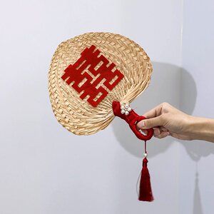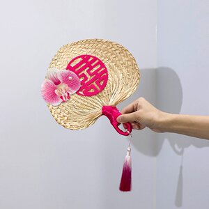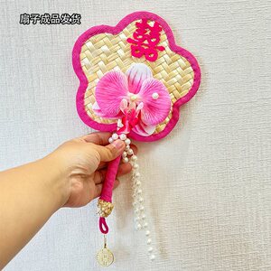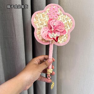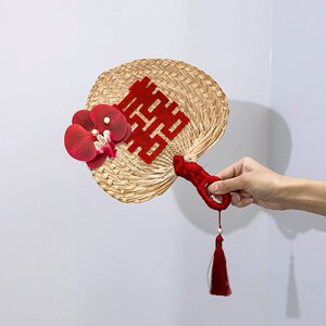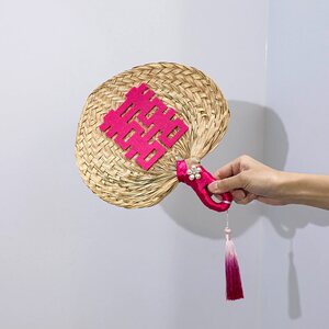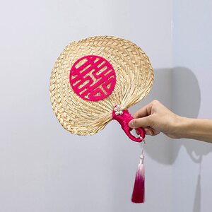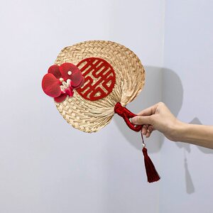新娘晨袍拍照喜扇手摇扇芭蕉扇晨拍道具结婚手拿蒲扇喜字草编扇子