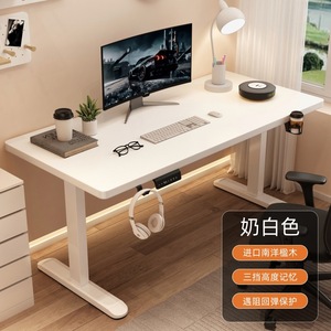 实木电竞电动升降桌木质桌板家用写字学习办公用工作台书桌