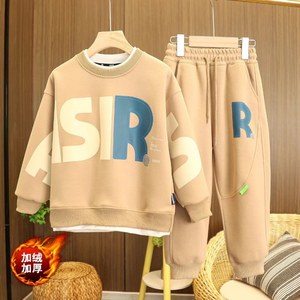 男童秋装套装秋冬季新款假两件童装儿童加绒加厚卫衣裤子两件套潮