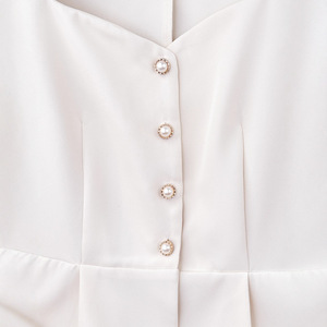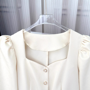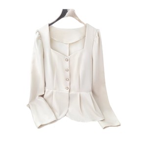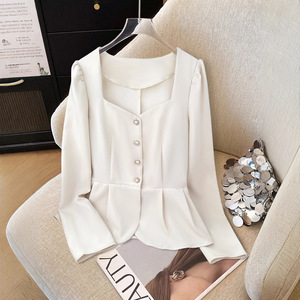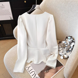 亚马逊2025春秋新款荷叶边上衣 欧美长袖单排扣方领纯色长袖上衣