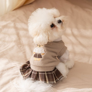 秋冬季新款宠物狗狗情侣装JK裙外出可牵引保暖背心裙泰迪宠物衣服