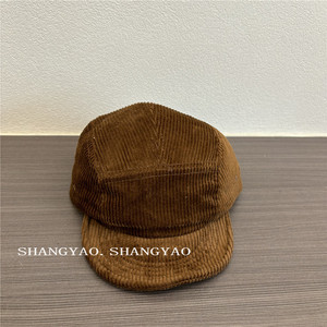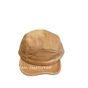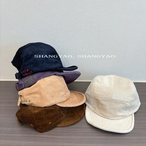 儿童帽子复古灯芯绒美式短檐帽男韩版五片棒球帽女街头潮童鸭舌帽