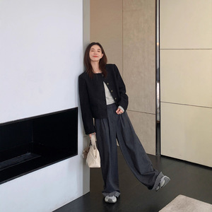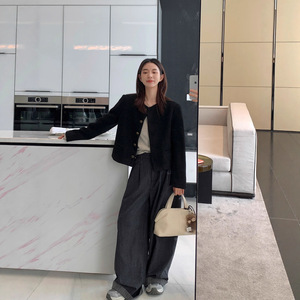 意法黑色小香风外套女秋季新款小个子高级感羊毛宽松短款上衣百搭