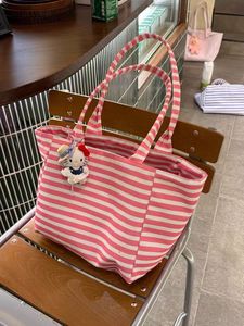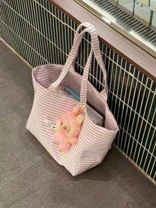 大容量帆布包条纹托特2025新款韩系高颜值手提通勤购物袋单肩包包