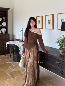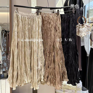 LS述致 复古高级感气质肌理垂感半身裙女2025秋季新款中长裙81312