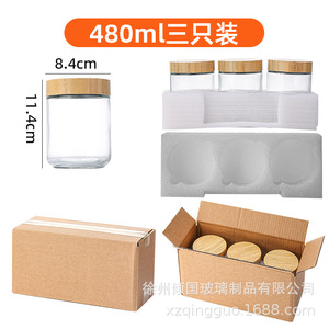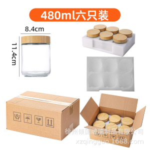跨境玻璃瓶密封罐竹木亚马逊储物隔夜酸奶杯食品坚果零食收纳罐