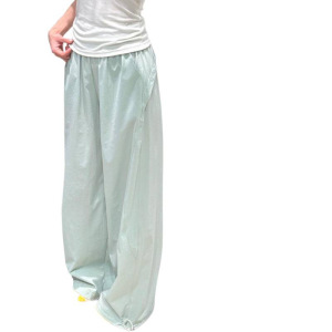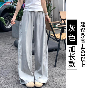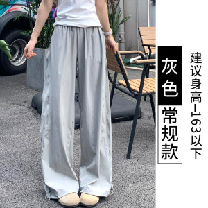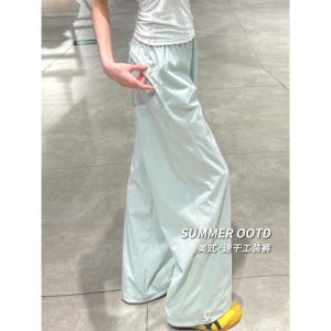 蓝色速干工装裤女夏季薄款2025新款宽松直筒休闲小个子阔腿运动裤