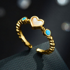 原创设计爱心彩宝开口戒指天然贝母蓝松石可调节食指戒新款指环圈