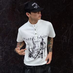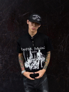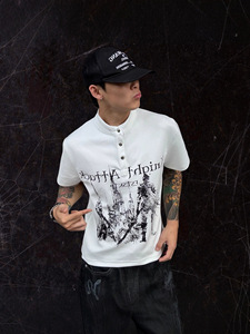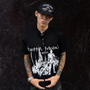 跨境!美区“凯旋骑士”哥特风十字架印花短袖正肩收领口T恤男女