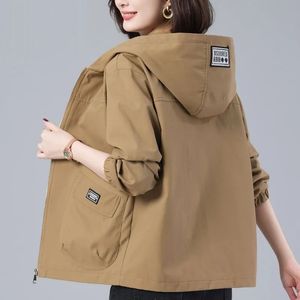 中年春秋季大码连帽宽松短外套女洋气减龄防风透气时尚单层夹克装