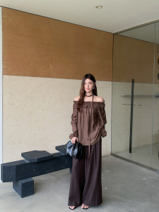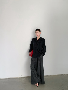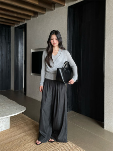 FONE简禾格雷系垂坠感高腰西装裤女2025秋季时尚宽松阔腿裤58288