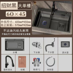 家用厨房招财款纳米灰色不锈钢大单槽水池洗菜盆新款全套加厚水槽